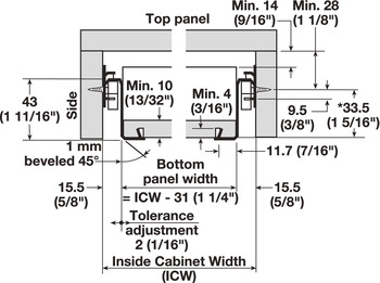 - For max. panel thickness : Back: 3/4"; Bottom: 3/4"