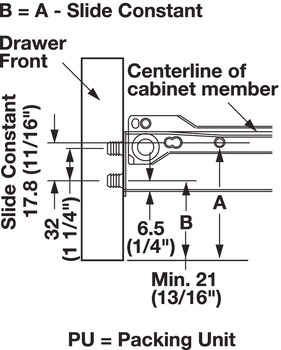 - Drawer slide attachment: Wood screws #6 x 5/8 FHP; Euro screw for 5 mm system holes