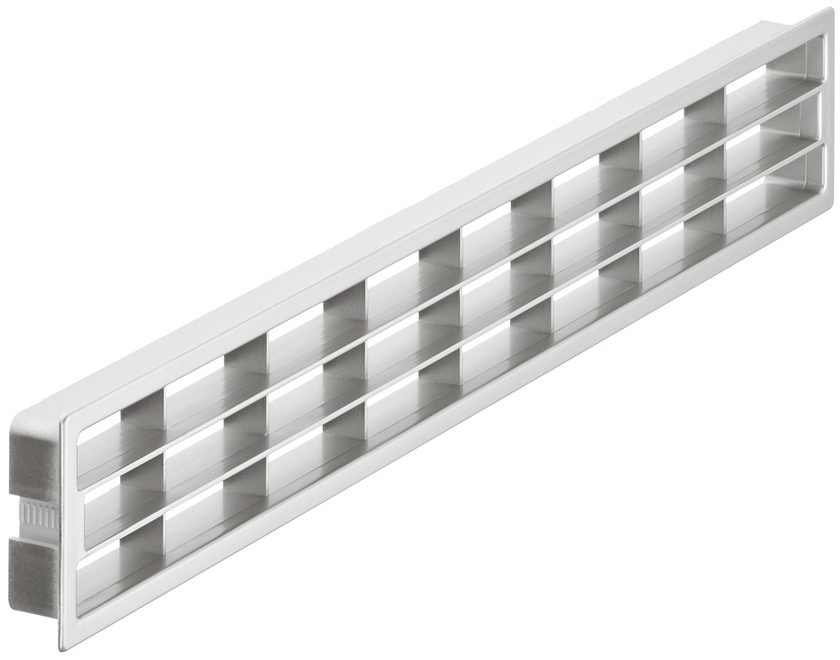 Hafele 571.77.900 Ventilation grills, plastic, with fixing clips, with louvres Square, Silver coloured matt, 458 x 65 mm
