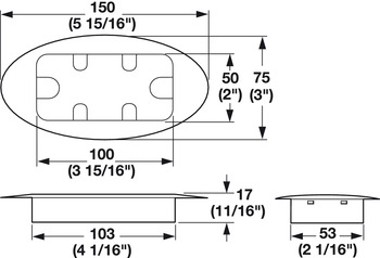 Category: Plastic Cable Grommet, Two-Piece, Oval,150 x 75mm, For workplace organization