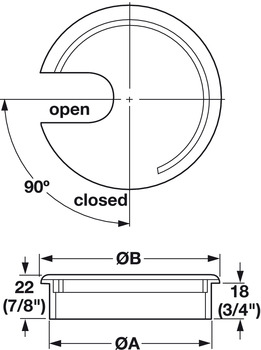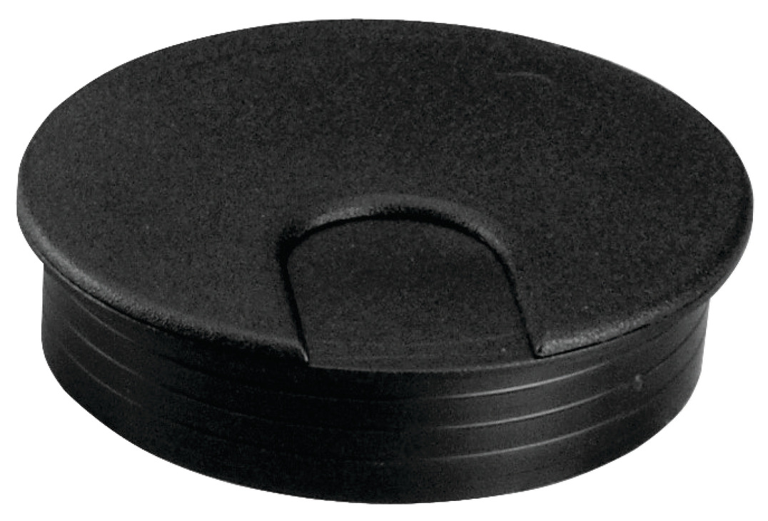 Product Title: Plastic Cable Grommet, Two-Piece, Round, 90° Rotating Top, For workplace organization, Ø60, Black