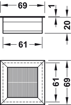 Category: Anodized Aluminum Grommet, Square 69 x 69 mm with Brush, aluminum, without lid