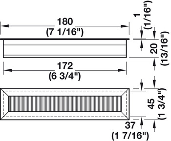 Category: Anodized Aluminum Grommet, Rectangular 180 x 45 mm with Brush, aluminum, without lid