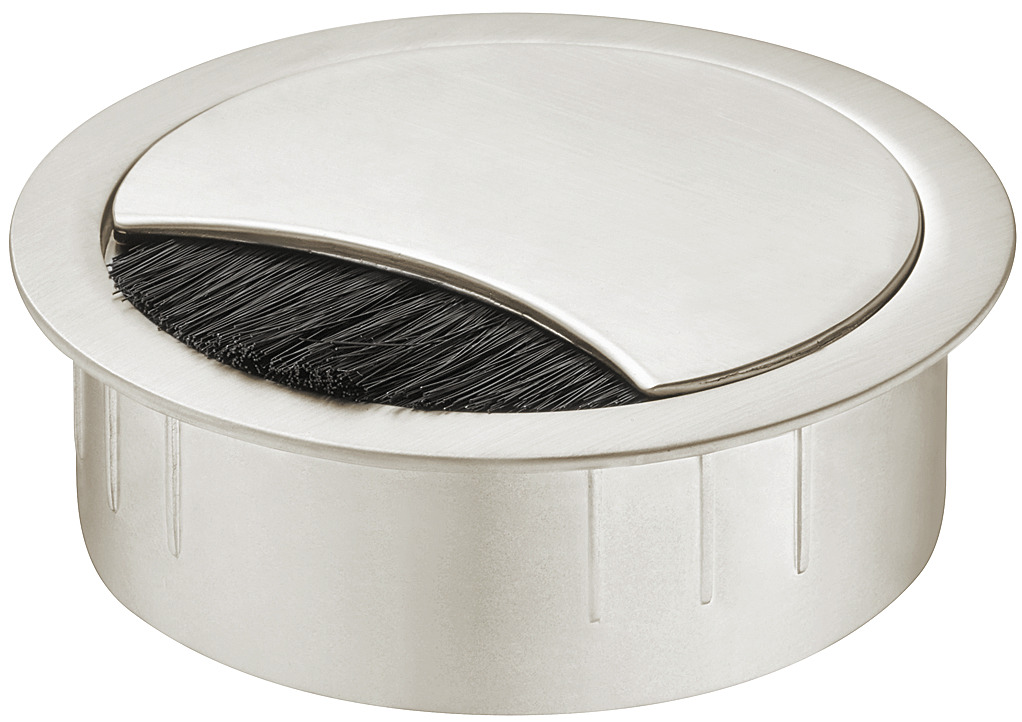 Product Title: Metal Cable Grommet, Two-piece, Round, Zinc alloy, with locking mechanism of the lid, height 21 mm, for workplace organization, Stainless steel effect, drill hole Diameter:: 60 mm