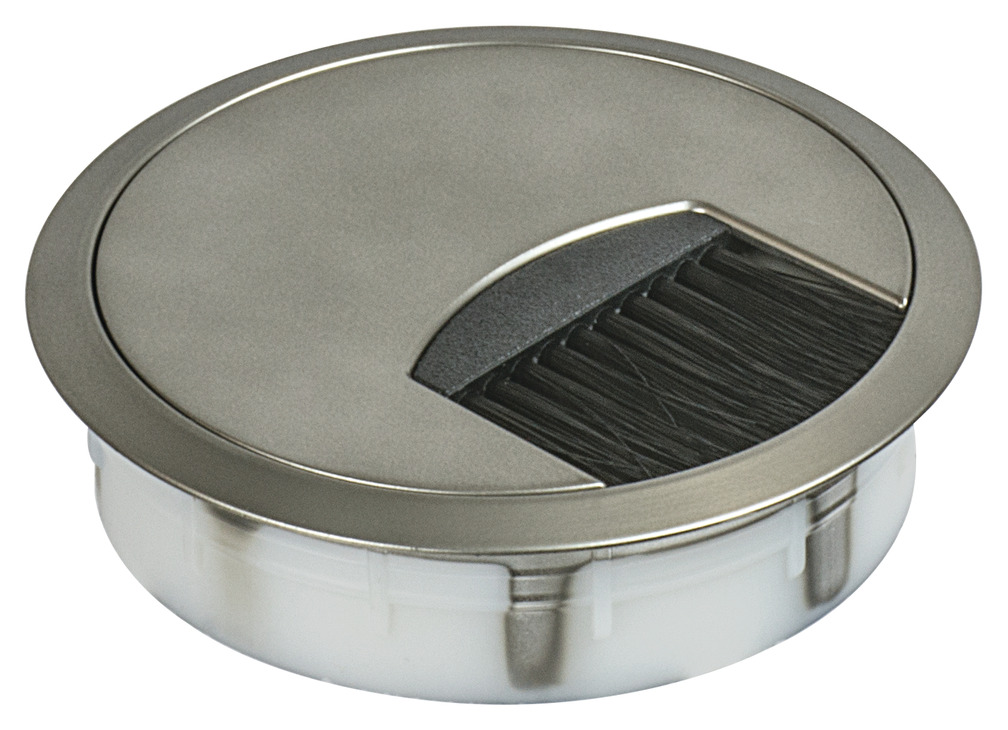 Product Title: Plastic Cable Grommet, Two-Piece, Round, with Brush, Plastic, with flexible brush seal, Stainless steel color, drill hole Diameter:: 80 mm