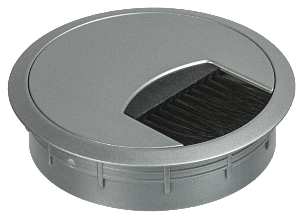 Product Title: Plastic Cable Grommet, Two-Piece, Round, with Brush, Plastic, with flexible brush seal, Silver, RAL 9006, drill hole Diameter:: 80 mm