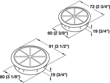 Product Title: Plastic Cable Grommet, One-Piece, Flexi-Top, Silver, Ø60 mm