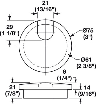 Category: Metal Cable Grommet, Two-Piece, Round, Ø61 mm, For workplace organization