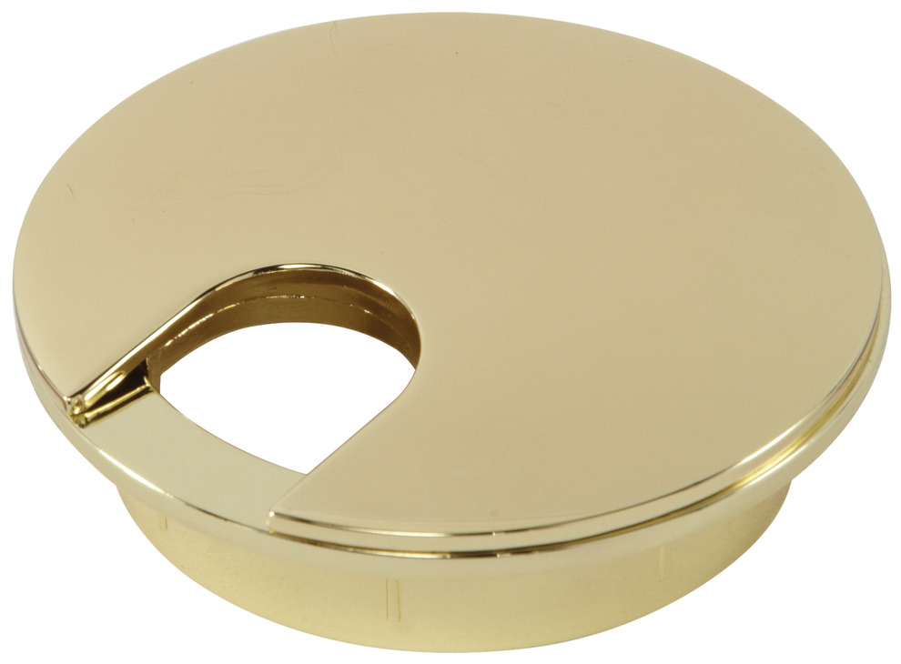 Product Title: Metal Cable Grommet, Two-Piece, Round, Ø61 mm, For workplace organization, Polished brass