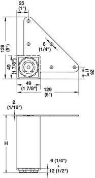 - Mounting plate allows feet to be mounted flush with corner of cabinet