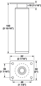 - Adjustment facility : Adjustable at top plate, range 18 mm (11/16")
