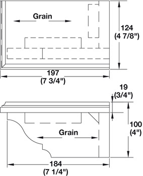 Product Title: Cabinet Foot, Traditional, 4" x 7 3/4" x 4 7/8", Left, maple