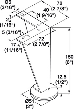Category: Furniture Foot, Steel, 150 mm (6"),