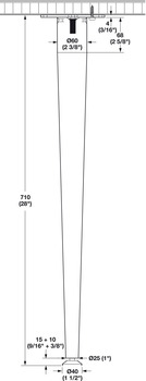 - Installation reference : Leg screws into steel square mounting plate with M10 bolt Leg tapers from Ø60 to Ø25 mm (2 3/8” to 1”)