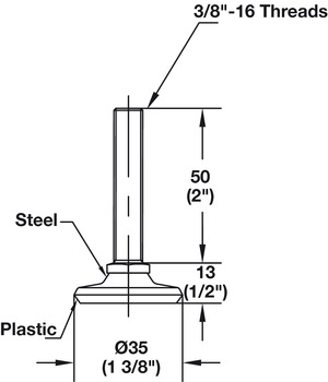 - Color/finish : Leg: Nickel-plated, brushed and resin epoxy-coated, mattThreaded Insert: MattLeveler: Matt & white