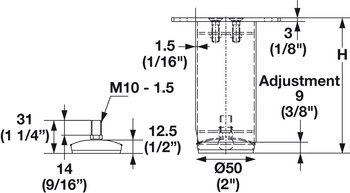 - Installation reference : High quality: 304 grade brushed stainless steelAll legs have a wall thickness of 1.5 mmAdjustable leveler offers 3/8” of adjustment