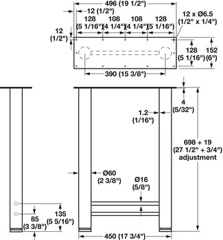 Category: H-Leg, 450 mm Width, Height: 698 mm (27 1/2")
