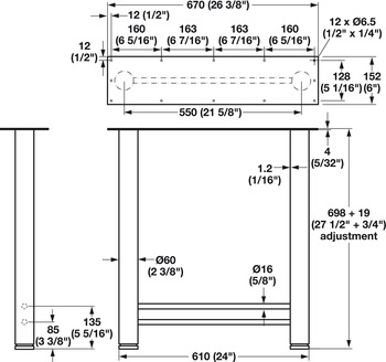 Category: Support Leg, 610 mm Width, Height 698 mm (27 1/2")