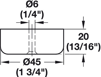 Category: Furniture Glide, with Hole for Screw Mounting, Black, installation height 20 mm, Ø45 mm