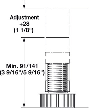 Hafele 637.54.311 Adjustment Foot, 30 mm Weight rating: 250 lbs., 91 mm (3 9/16") - 119 mm (4 11/16")
