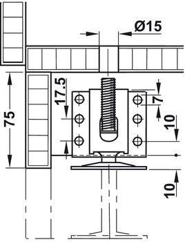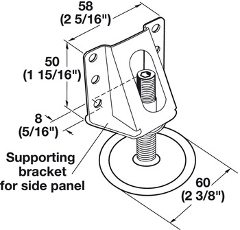 Category: Base Leveler, Heavy Duty With Supporting Bracket, load-bearing capacity 200 kg, steel, zinc-plated, M12 x 65 mm threaded bolt