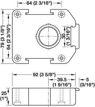 Product Title: Mounting Plate, Häfele AXILO® Cabinet Leveling System, With side panel support tab, Screw mount