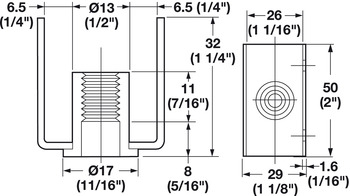 Product Title: Threaded U-Bracket, for 1" Material, With 1/4"-20 thread
