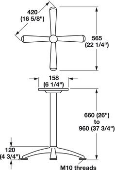 Adjustable Column, KOYO Pedestal System (choose one):Height adjustment range 300 mm (11 3/4"), Polished chrome