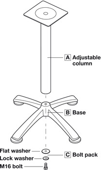 - Welded M16 nut in bottom of column allows for mounting of pedestal bases using bolt pack