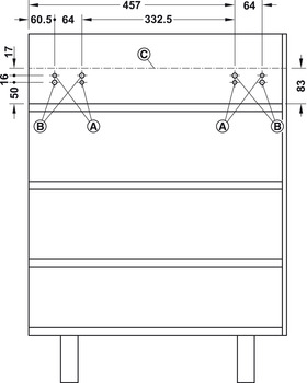 - Internal installation height : 83 mm (3 1/4") + 3 x top thickness