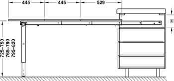 Hafele 642.19.929 Pull-out table and folding fitting, with folding table leg for standard cabinet width 1200 mm