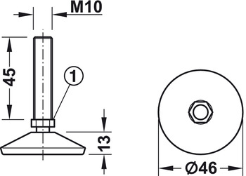 Category: Base Leveler, Swiveling Base, M10 x 45 mm, Ø46 mm (1 3/4"), M10, thread length: 45 mm