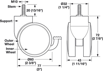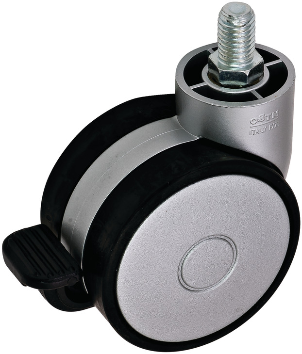 Hafele Caster, M10 Stem, Load-Bearing Capacity 110 lbs., Silver, With brake, Item# 660.31.991, 66031991, 660-31-991Zoom