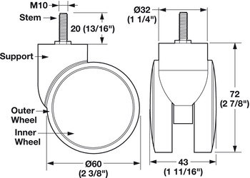 Hafele Caster, M10 Stem, Load-Bearing Capacity 110 lbs., Silver, Without brake, Item# 660.32.991, 66032991, 660-32-991Zoom