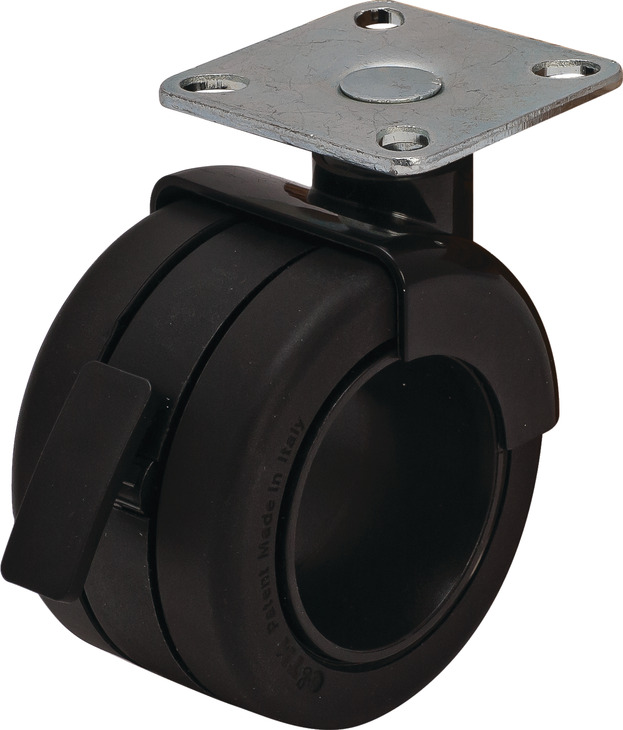 Hafele 661.24.304 Caster, Plate Mount, Load-Bearing Capacity 110 lbs., Black/Black Free running, with brake, With brake