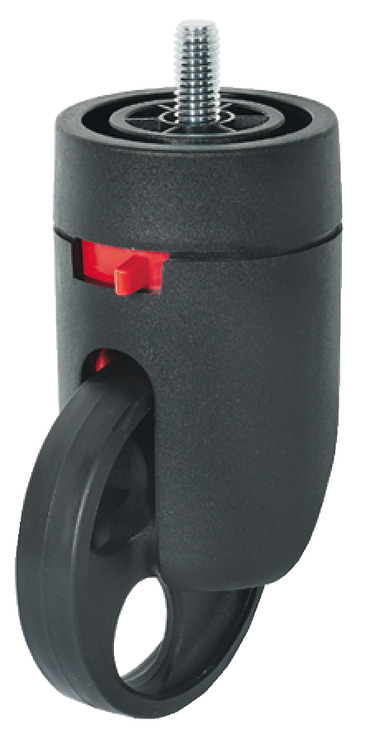 - Unique locking mechanism secures wheel in both rotation and swivel