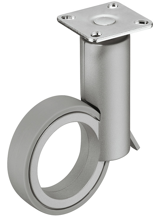 Hafele 661.88.901 Caster, No Hub, Load Bearing Capacity 110 lbs. with screw-on plate and brake, Silver aluminum colored with gray wheel