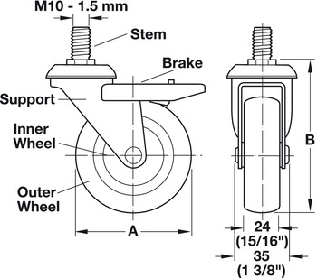 - Installation reference : Non-marring polyurethane wheelMoves with ease on both hard and soft surfacesData Sheet
