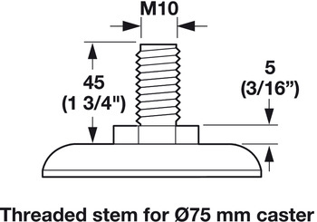 Product Title: Swiveling Caster, M10 Stem, Load-Bearing Capacity 66 lbs., Ø75 mm