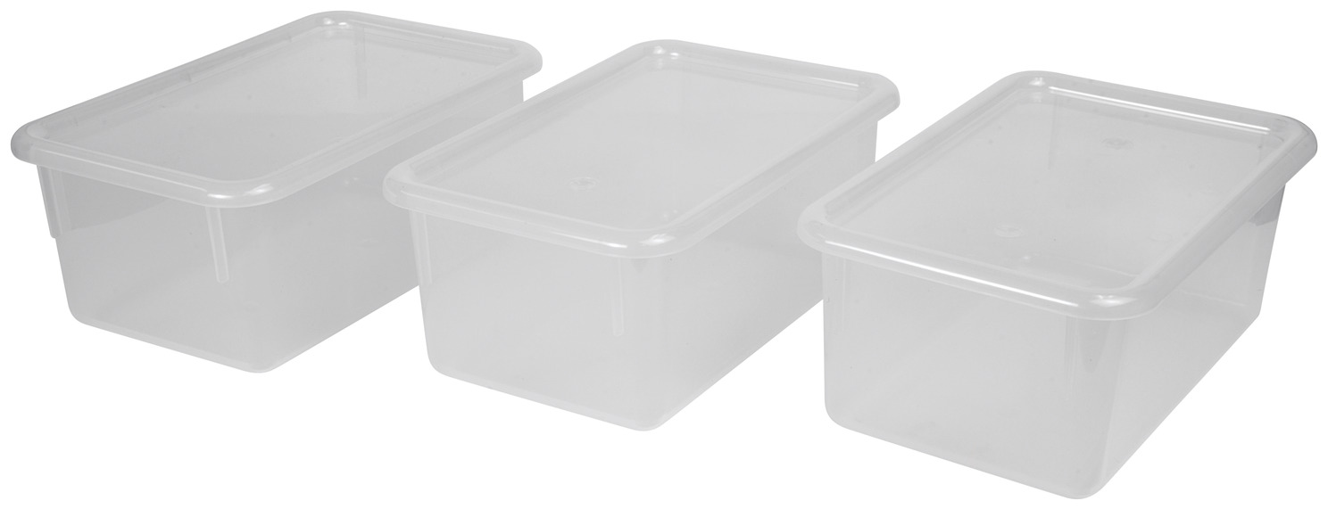 - Lids do not snap into place; they rest on top of the bins