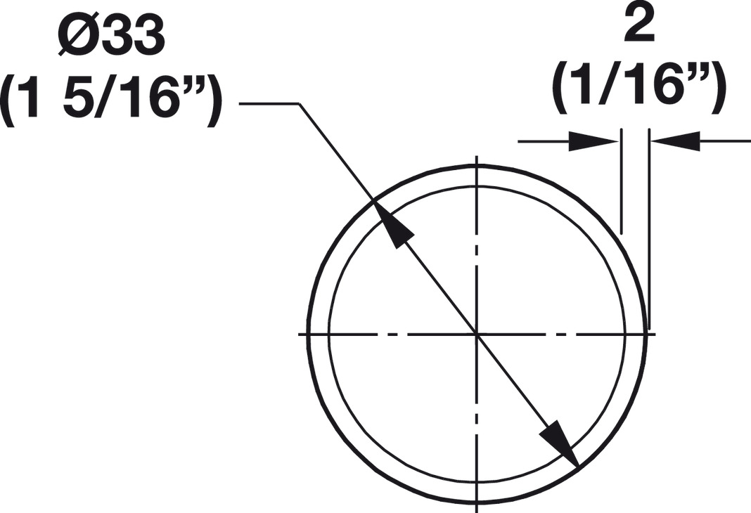 - For wardrobe rail : Round, 33 mm