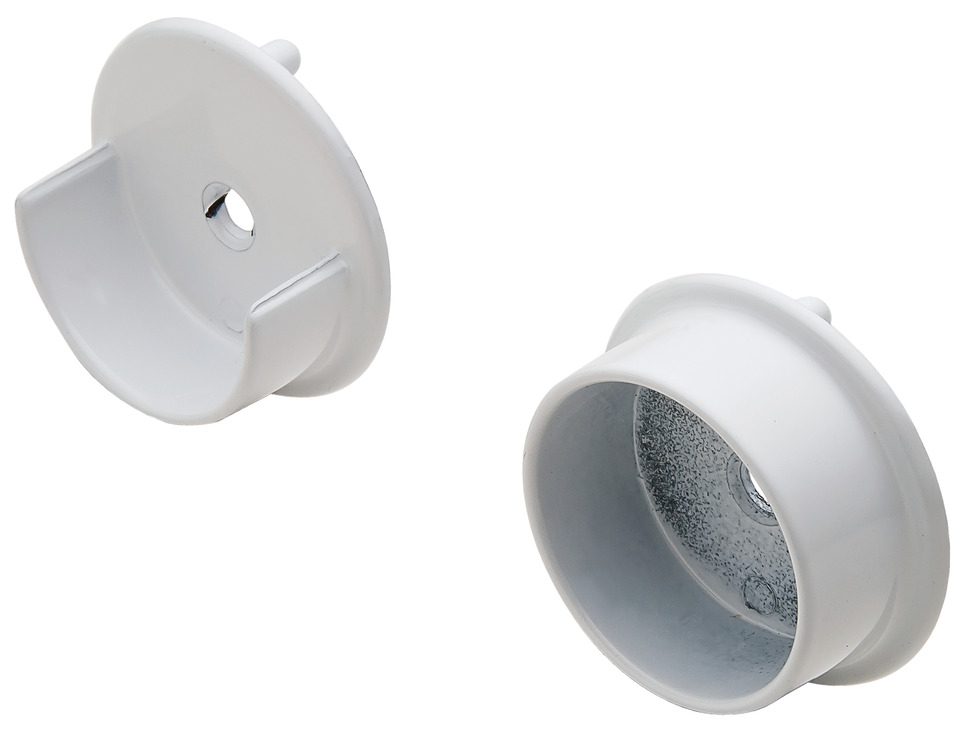 Hafele 803.56.710 Wardrobe Tube End Support, Synergy Collection With two pins for 5 mm holes, White powder coated