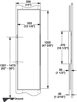 - Mirror extends 6” from the front edge of the closet allowing up to 345° rotation