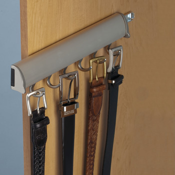 Product Title: Belt Rack, TAG Synergy Elite Collection, 5 Hook, 11 7/8", With full extension slide, Matt aluminum with chrome hooks and end caps
