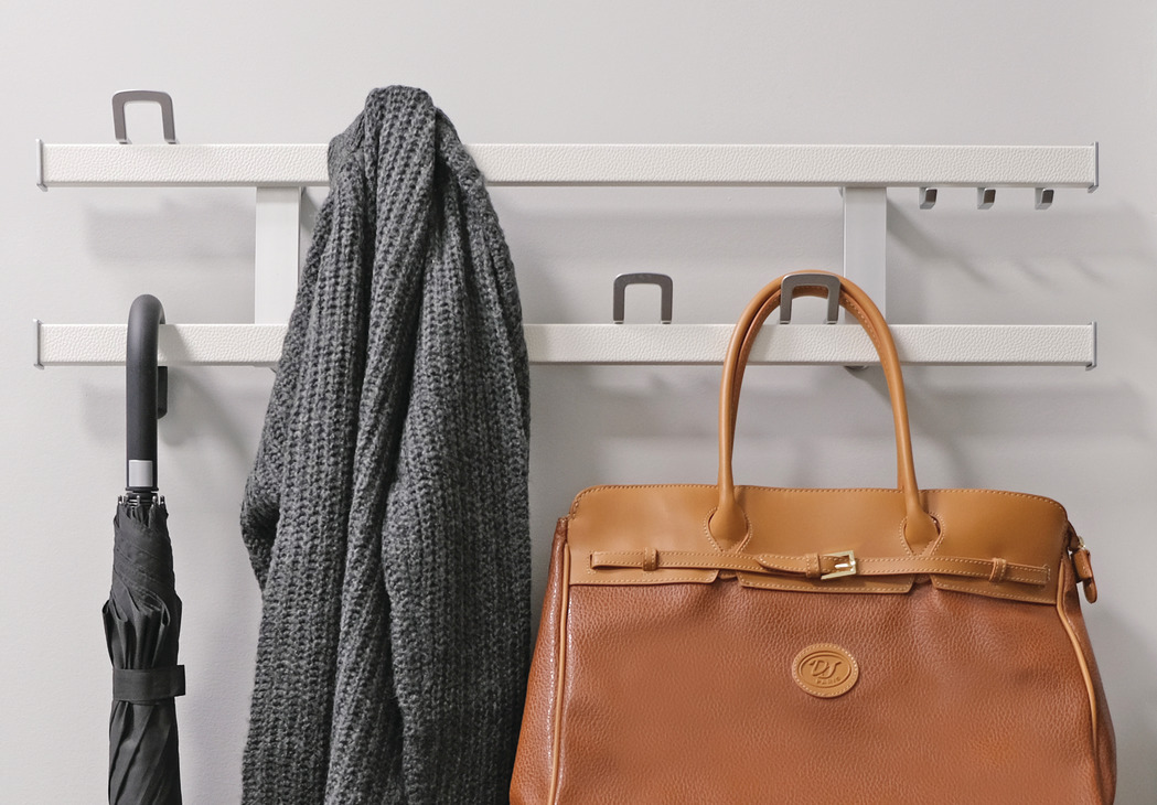 - The Duet can be mounted lower on the wall as a stand-alone shoe rack or add another Duet above for backpacks and jackets.