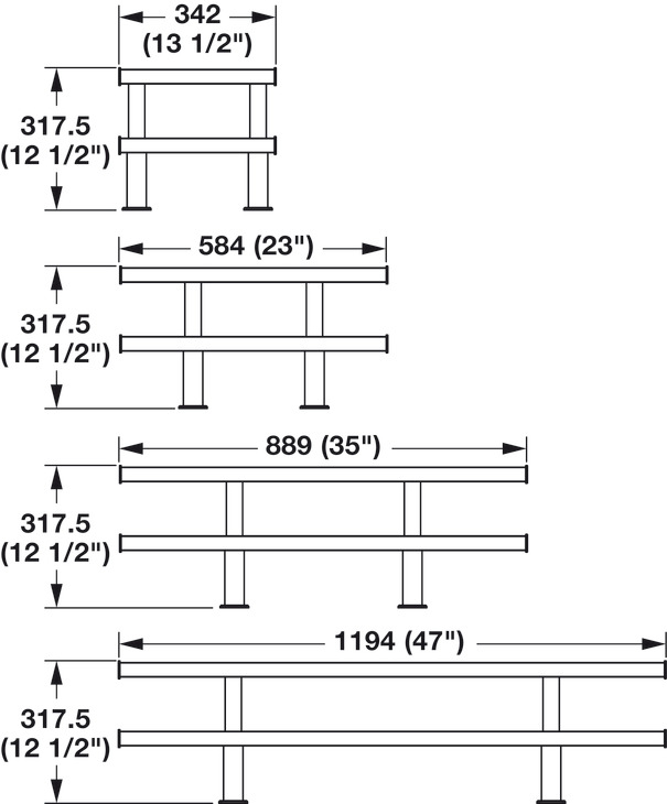 - Note on load bearing capacity : Load bearing capacity is per horizontal bar and max. 90 kb (200 lbs) total for a system, evenly distributed