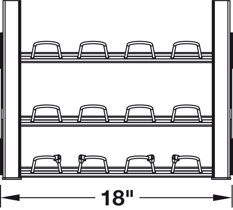 - 18” holds up to 6 pairs, 24” holds up to 9 pairs, 30” up to 12 pairs & 36” up to 15 pairs