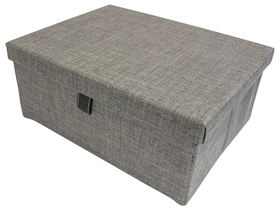 Product Title: Storage Box, TAG ENGAGE, Slate fabric, 18"