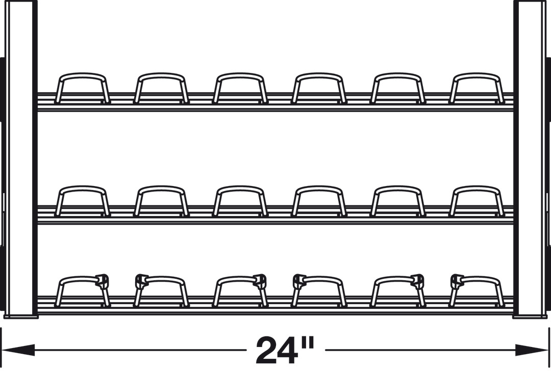- 18” holds up to 6 pairs, 24” holds up to 9 pairs, 30” up to 12 pairs & 36” up to 15 pairs
