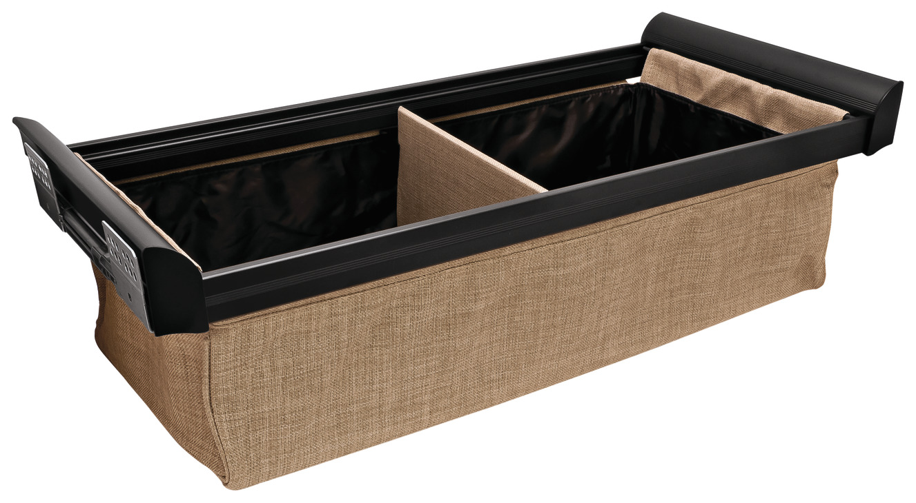 Product Title: Divided Deep Drawer, TAG ENGAGE, Black with beach fabric, 24" width